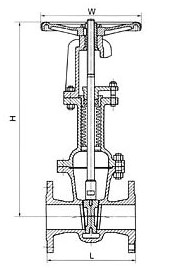 鑄鋼高壓閘閥-1.6MPa主要連接尺寸結構圖: