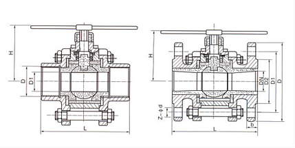 (法蘭)不銹鋼高壓球閥主要外表尺寸和連接尺寸:
